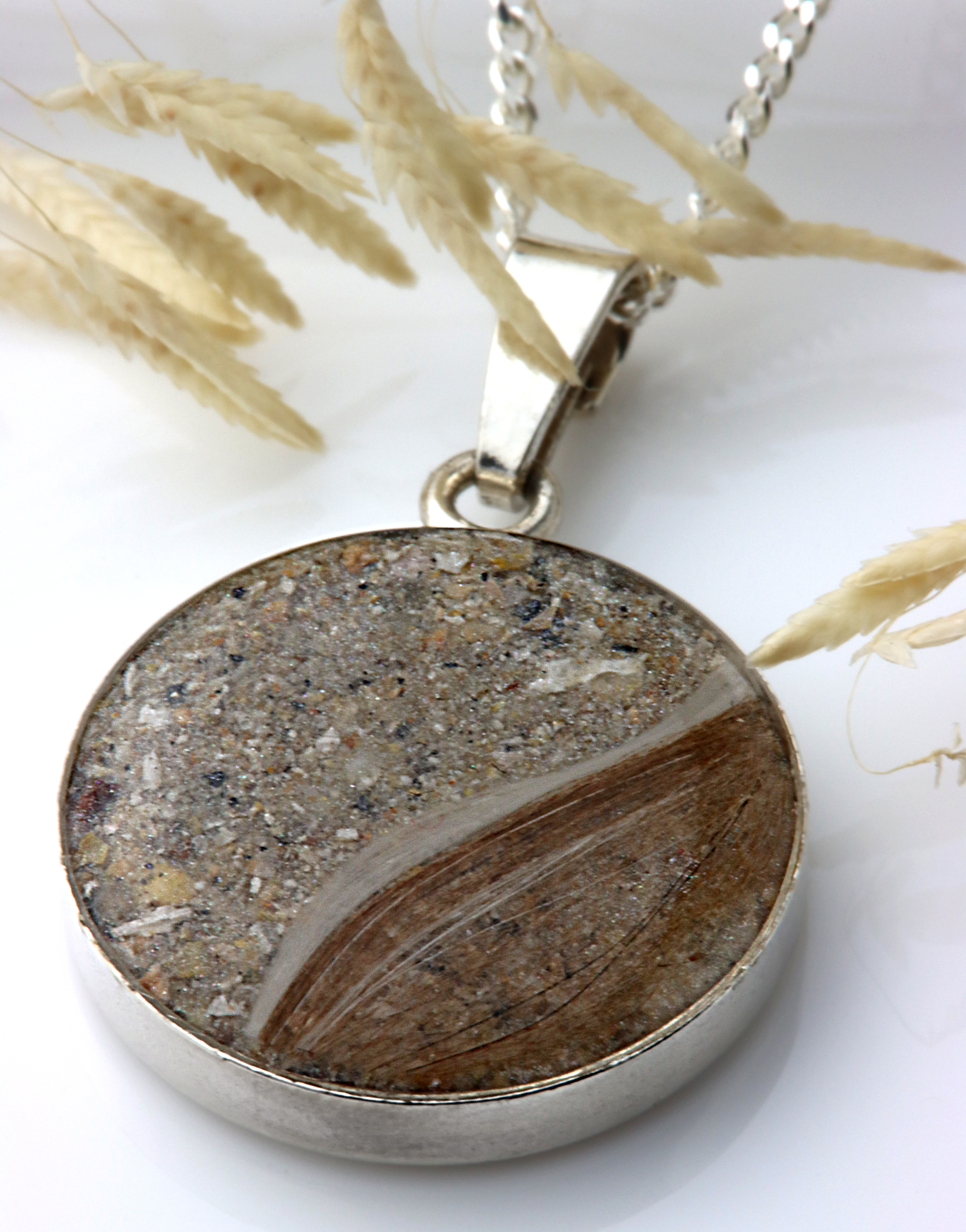 In dem 18 mm großen Anhänger kann eine kleine Menge Asche, eine Haarsträhne, Stoff und Fell eingearbeitet werden.